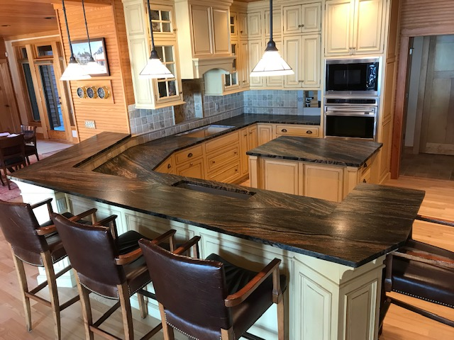 Cadillac Cut Stone LLC is your local supplier of high-end stone for countertops, vanities and more. See below for some examples of our work, then call for a free quote. Trust us to handle template fabrication and installation of your stone surface.